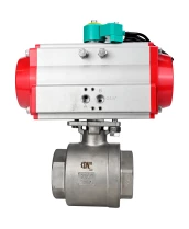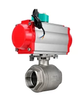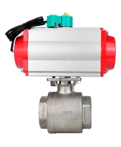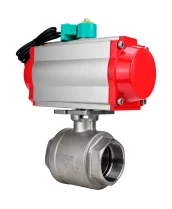 Кран шаровой DN.ru BV3232P(2pc)-FP-T-ISO-H Ду40 Ру63 полнопроходной, внутренняя резьба, нержавеющая сталь 316, уплотнение - PTFE, с пневмоприводом PA-DA-065 и магнитным переключателем ALS200D