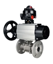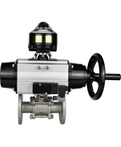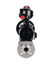 Кран шаровой DN.ru BV3232P(3pc)-FP-F-ISO-H Ду100 Ру16 полнопроходной трехсоставной, фланцевый, нержавеющая сталь 316, уплотнение - PTFE, 22х22, F10, WDVF, с пневмоприводом DN.ru PA-DA-105-1, пневмораспределителем 4М310-08 220В NAMUR и БКВ APL-510N EX