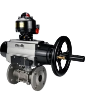 Кран шаровой DN.ru BV3232P(3pc)-FP-F-ISO-H Ду100 Ру16 полнопроходной трехсоставной, фланцевый, нержавеющая сталь 316, уплотнение - PTFE, 22х22, F10, WDVF, с пневмоприводом DN.ru PA-DA-105-1, пневмораспределителем 4М310-08 220В NAMUR и БКВ APL-510N EX с сертификатами качества. Доставка. Гарантия. В наличии! Звоните!