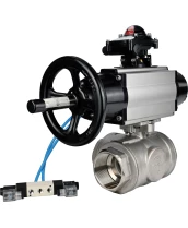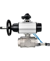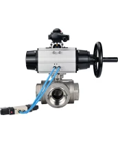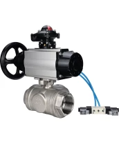 Кран шаровой DN.ru BV3232P(4pc)-SP-3WL-T-ISO-H Ду100 Ру40, стандартнопроходной, четырехсоставной, корпус - нержавеющая сталь 316, уплотнение - PTFE, внутренняя резьба, с пневмоприводом PA-DA-105-1, пневмораспределителем 4V320-08 220В, БКВ APL-210N