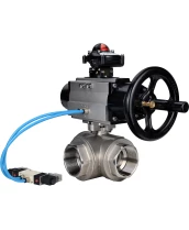Кран шаровой DN.ru BV3232P(4pc)-SP-3WL-T-ISO-H Ду100 Ру40, стандартнопроходной, четырехсоставной, корпус - нержавеющая сталь 316, уплотнение - PTFE, внутренняя резьба, с пневмоприводом PA-DA-105-1, пневмораспределителем 4V320-08 220В, БКВ APL-210N с сертификатами качества. Доставка. Гарантия. В наличии! Звоните!