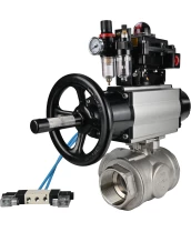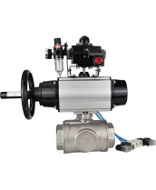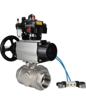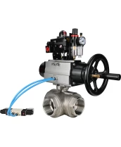 Кран шаровой DN.ru BV3232P(4pc)-SP-3WL-T-ISO-H Ду100 Ру40, стандартнопроходной, четырехсоставной, нержавеющая сталь 316, уплотнение - PTFE, внутренняя резьба, с пневмоприводом PA-DA-105-1, пневмораспределителем 4V320-08 220В, БКВ APL-410N Ex, БПВ AFC2000
