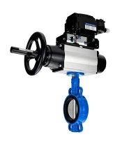 Затвор дисковый поворотный DN.ru WBV1132N-2W-Fb-H Ду125 Ру16, корпус - чугун GG25, диск - нержавеющая сталь 316L, уплотнение - NBR, с пневмоприводом DN.ru PA-DA-105-1 и с электропневматическим поворотным позиционером YT-1000RSN без обратной связи