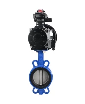 Затвор дисковый поворотный DN.ru WBV1132N-2W-Fb-H Ду150 Ру16, корпус - чугун GG25, диск - нержавеющая сталь 316L, уплотнение - NBR, с пневмоприводом DN.ru PA-DA-105-1 двойного действия, пневмораспределителем 4М310-08 220В NAMUR, БКВ APL-210N