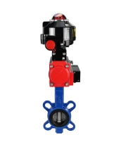Затвор дисковый поворотный DN.ru WBV1432E-2W-Fb-H Ду300 Ру16, корпус - чугун GGG50, диск - нержавеющая сталь 316L, уплотнение - EPDM, с пневмоприводом DN.ru PA-DA-140 двойного действия, пневмораспределителем 4М310-08 220В NAMUR, БКВ APL-510N-EX