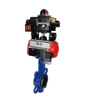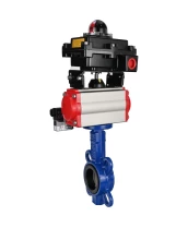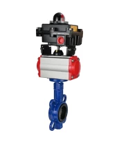 Затвор дисковый поворотный DN.ru WBV1432E-2W-Fb-H Ду50 Ру16, корпус - чугун GGG50, диск - нержавеющая сталь 316L, уплотнение - EPDM, с пневмоприводом DN.ru PA-SA-083 с возвратными пружинами, пневмораспределителем 4М310-08 24В NAMUR, БКВ APL-410N EX