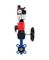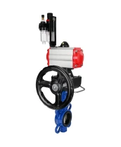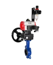 Затвор дисковый поворотный DN.ru WBV1432N-2W-Fb-H Ду65 Ру16, корпус - чугун GGG50, диск - нержавеющая сталь 316L, уплотнение - NBR, с пневмоприводом PA-DA-065, пневмораспределителем 4М310-08 220В NAMUR, ручным дублером MON1-250-T26-ISO и БПВ AFC2000