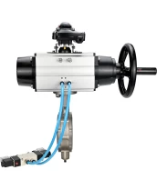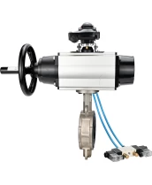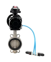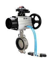 Затвор дисковый поворотный DN.ru WBV3232E-2W-Fb-H Ду150 Ру16, корпус - нержавеющая сталь 316L, диск - нержавеющая сталь 316L, уплотнение - EPDM, с пневмоприводом PA-DA-105-1 двойного действия, с пневмораспределителем 4V320-10 220В, с БКВ APL-210N