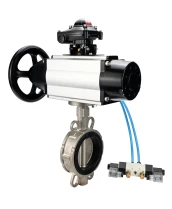 Купить Затвор дисковый поворотный DN.ru WBV3232E-2W-Fb-H Ду150 Ру16, корпус - нержавеющая сталь 316L, диск - нержавеющая сталь 316L, уплотнение - EPDM, с пневмоприводом PA-DA-105-1 двойного действия, с пневмораспределителем 4V320-10 220В, с БКВ APL-210N вы можете в компании Стандарт-Н, оформив заказ в интернет магазине, или