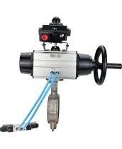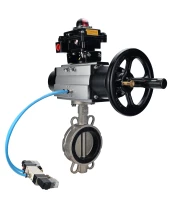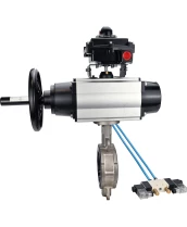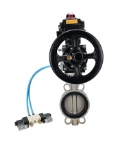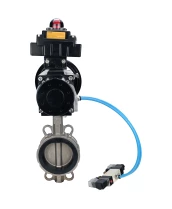 Затвор дисковый поворотный DN.ru WBV3232V-2W-Fb-H Ду150 Ру16, корпус - нержавеющая сталь 316L, диск - нержавеющая сталь 316L, уплотнение - Viton, с пневмоприводом PA-DA-105-1 двойного действия, с пневмораспределителем 4V320-08 220В, с БКВ APL-410N EX