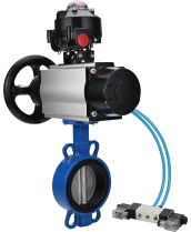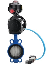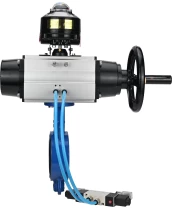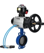 Затвор дисковый поворотный DN.ru WBV3432V-2W-Fb-H Ду150 Ру16, корпус - углеродистая сталь WCB, диск - нержавеющая сталь 316L, уплотнение - Viton, с пневмоприводом PA-DA-105-1 двойного действия, с пневмораспределителем 4V320-08 220В, с БКВ APL-510N EX