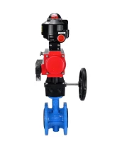 Затвор дисковый поворотный DN.ru WBV1313E-2W-F-H Ду100 Ру16 фланцевый, корпус - чугун GGG40, диск - чугун GGG40, EPDM, с пневмоприводом DN.ru PA-DA-105, пневмораспределителем 4М310-08 24В NAMUR, БКВ APL-510N EX и ручным дублером MON1-250-T26-ISO