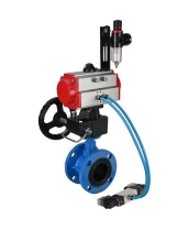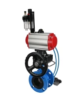 Затвор дисковый поворотный DN.ru WBV1313E-2W-F-H Ду150 Ру16 фланцевый, корпус - чугун GGG40, диск - чугун GGG40, EPDM, с пневмоприводом DN.ru PA-DA-130, пневмораспределителем DN.ru 4V320-08 220В, ручным дублером DN.ru MON1-250-T26-ISO и БПВ DN.ru AFC2000