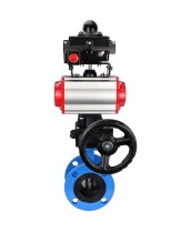Затвор дисковый поворотный DN.ru WBV1313E-2W-F-H Ду200 Ру16 фланцевый, корпус - чугун GGG40, диск - чугун GGG40, EPDM, с пневмоприводом DN.ru PA-DA-140, пневмораспределителем 4М310-08 24В NAMUR, БКВ APL-410N EX и ручным дублером MON2-450-T28-ISO