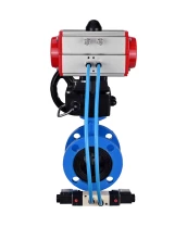 Затвор дисковый поворотный DN.ru WBV1313E-2W-F-H Ду200 Ру16 фланцевый, корпус - чугун GGG40, диск - чугун GGG40, EPDM, с пневмоприводом DN.ru PA-DA-140, пневмораспределителем DN.ru 4V320-08 220В и ручным дублером DN.ru MON2-450-T28-ISO