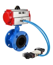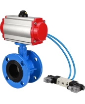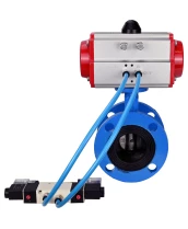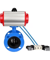 Затвор дисковый поворотный DN.ru WBV1313E-2W-F-H Ду200 Ру16 фланцевый, корпус - чугун GGG40, диск - чугун GGG40, уплотнение - EPDM, с пневмоприводом DN.ru PA-DA-140 и пневмораспределителем DN.ru 4V320-10 220В