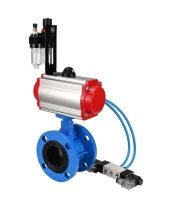Затвор дисковый поворотный DN.ru WBV1313E-2W-F-H Ду80 Ру16 фланцевый, корпус - чугун GGG40, диск - чугун GGG40, уплотнение - EPDM, с пневмоприводом DN.ru PA-DA-105, пневмораспределителем DN.ru 4V320-08 220В и БПВ DN.ru AFC2000
