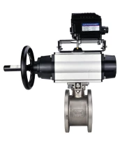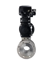 Кран шаровой DN.ru BV3232P-FP-Fb-ISO-H Ду100 Ру16, полнопроходной межфланцевый, нержавеющая сталь SS316, уплотнение - PTFE, с пневмоприводом PA-DA-105-1 двойного действия и с электропневматическим поворотным позиционером YT-1000RSN без обратной связи