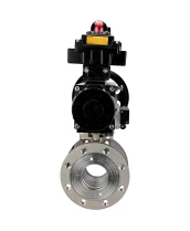 Кран шаровой DN.ru BV3232P-FP-Fb-ISO-H Ду100 Ру16, полнопроходной межфланцевый, нержавеющая сталь SS316, уплотнение - PTFE, с пневмоприводом PA-DA-105-1 двойного действия, с пневмораспределителем 4М310-08 220В NAMUR, с БКВ APL-410N EX, с БПВ AFC2000