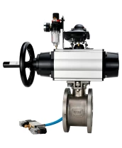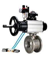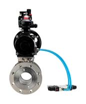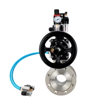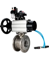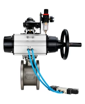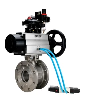 Кран шаровой DN.ru BV3232P-FP-Fb-ISO-H Ду100 Ру16, полнопроходной межфланцевый, нержавеющая сталь SS316, уплотнение - PTFE, с пневмоприводом PA-DA-105-1 двойного действия, с пневмораспределителем 4V320-08 220В, с БКВ APL-210N, с БПВ AFC2000