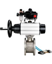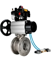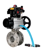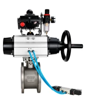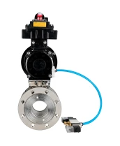 Кран шаровой DN.ru BV3232P-FP-Fb-ISO-H Ду80 Ру16, полнопроходной межфланцевый, нержавеющая сталь SS316, уплотнение - PTFE, с пневмоприводом PA-DA-105-1 двойного действия, с пневмораспределителем 4V320-08 220В, с БКВ APL-410N EX, с БПВ AFC2000