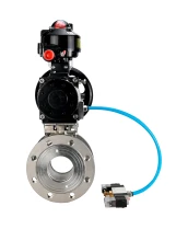 Кран шаровой DN.ru BV3232P-FP-Fb-ISO-H Ду80 Ру16, полнопроходной межфланцевый, нержавеющая сталь SS316, уплотнение - PTFE, с пневмоприводом PA-DA-105-1 двойного действия, с пневмораспределителем 4V320-08 220В, с БКВ APL-510N EX, с БПВ AFC2000