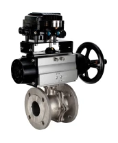 Кран шаровой DN.ru BV3232P(2pc)-FP-F-ISO-H Ду100 Ру16, полнопроходной фланцевый, нержавеющая сталь SS316, уплотнение - PTFE, с пневмоприводом PA-DA-105-1 двойного действия и с электропневматическим поворотным позиционером YT-1000RSN с обратной связью