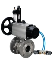 Кран шаровой DN.ru BV3232P(2pc)-FP-F-ISO-H Ду80 Ру16, полнопроходной фланцевый, нержавеющая сталь SS316, уплотнение - PTFE, с пневмоприводом PA-DA-105-1 двойного действия, с пневмораспределителем 4V320-08 220В, с БПВ AFC2000