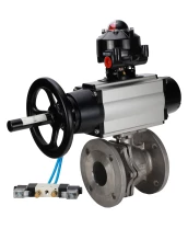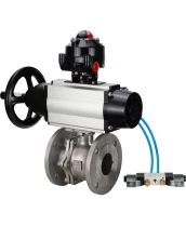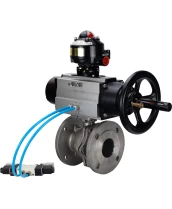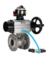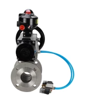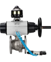 Кран шаровой DN.ru BV3232P(2pc)-FP-F-ISO-H Ду80 Ру16, полнопроходной фланцевый, нержавеющая сталь SS316, уплотнение - PTFE, с пневмоприводом PA-DA-105-1 двойного действия, с пневмораспределителем 4V320-10 220В, с БКВ APL-510N EX