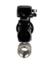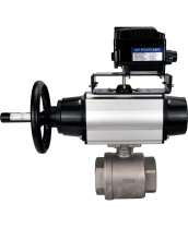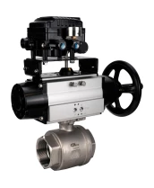 Кран шаровой DN.ru BV3232P(2pc)-FP-T-ISO-H Ду100 Ру40 полнопроходной двухходовой, нерж. сталь SS316, внутренняя резьба, PTFE, с пневмоприводом PA-DA-105-1 двойного действия и с электропневматич. поворотным позиционером YT-1000RSN с обратной связью