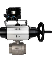Кран шаровой DN.ru BV3232P(2pc)-FP-T-ISO-H Ду100 Ру40 полнопроходной двухходовой, нерж. сталь SS316, внутренняя резьба, PTFE, с пневмоприводом PA-DA-105-1 двойного действия и с электропневматич. поворотным позиционером YT-1000RSN с обратной связью с сертификатами качества. Доставка. Гарантия. В наличии! Звоните!
