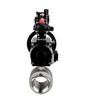 Кран шаровой DN.ru BV3232P(2pc)-FP-T-ISO-H Ду80 Ру40 полнопроходной двухходовой, нержавеющая сталь SS316, внутренняя резьба, PTFE, с пневмоприводом PA-DA-105-1 двойного действия, с пневмораспределителем 4М310-08 220В NAMUR, с БКВ APL-210N, с БПВ AFC2000