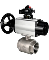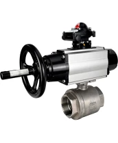 Кран шаровой DN.ru BV3232P(2pc)-FP-T-ISO-H Ду80 Ру40 полнопроходной двухходовой, нержавеющая сталь SS316, внутренняя резьба, уплотнение - PTFE, с пневмоприводом PA-DA-105-1 двойного действия, с пневмораспределителем 4М310-08 24В NAMUR, с БКВ APL-210N
