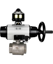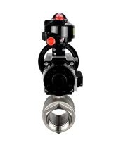 Кран шаровой DN.ru BV3232P(2pc)-FP-T-ISO-H Ду80 Ру40 полнопроходной двухходовой, нержавеющая сталь SS316, внутренняя резьба, уплотнение - PTFE, с пневмоприводом PA-DA-105-1 двойного действия, с пневмораспределителем 4М310-08 24В NAMUR, с БКВ APL-510N EX