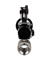 Кран шаровой DN.ru BV3232P(2pc)-FP-T-ISO-H Ду80 Ру40 полнопроходной двухходовой, нержавеющая сталь SS316, внутренняя резьба, уплотнение - PTFE, с пневмоприводом PA-DA-105-1 двойного действия, с пневмораспределителем 4М310-08 24В NAMUR, с БПВ AFC2000