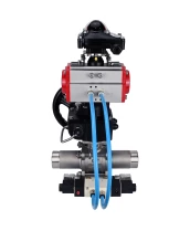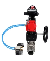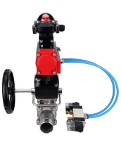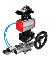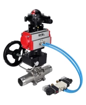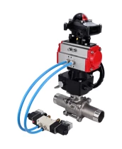 Кран шаровой DN.ru BV3232P(3pc)-FP-W-ISO-H LONG Ду15 Ру63, полнопроходной, трехсоставной, нержавеющая сталь 316, PTFE, под приварку, с пневмоприводом PA-DA-052, с пневмораспределителем 4V320-10 220В, БКВ APL-210N, ручным дублером MON1-250-T26-ISO