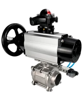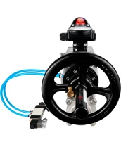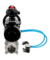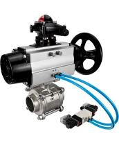 Кран шаровой DN.ru BV3232P(3pc)-FP-W-ISO-H Ду100 Ру25, полнопроходной, трехсоставной, нержавеющая сталь 316, уплотнение - PTFE, под приварку, с пневмоприводом PA-DA-105-1, пневмораспределителем 4V320-10 220В, БКВ APL-210N