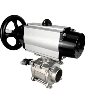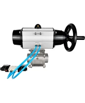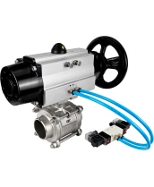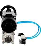 Кран шаровой DN.ru BV3232P(3pc)-FP-W-ISO-H Ду80 Ру25, полнопроходной, трехсоставной, нержавеющая сталь 316, уплотнение - PTFE, под приварку, с пневмоприводом PA-DA-105-1, пневмораспределителем 4V320-08 220В
