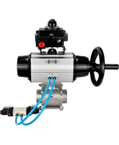 Кран шаровой DN.ru BV3232P(3pc)-FP-W-ISO-H Ду80 Ру25, полнопроходной, трехсоставной, нержавеющая сталь 316, уплотнение - PTFE, под приварку, с пневмоприводом PA-DA-105-1, пневмораспределителем 4V320-08 220В, БКВ APL-410N Ex с сертификатами качества. Доставка. Гарантия. В наличии! Звоните!