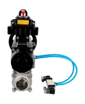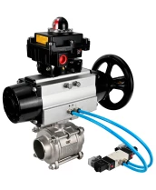 Кран шаровой DN.ru BV3232P(3pc)-FP-W-ISO-H Ду80 Ру25, полнопроходной, трехсоставной, нержавеющая сталь 316, уплотнение - PTFE, под приварку, с пневмоприводом PA-DA-105-1, пневмораспределителем 4V320-08 220В, БКВ APL-410N Ex