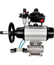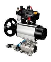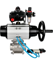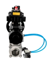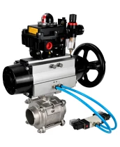 Кран шаровой DN.ru BV3232P(3pc)-FP-W-ISO-H Ду80 Ру25, полнопроходной, трехсоставной, нержавеющая сталь 316, уплотнение - PTFE, под приварку, с пневмоприводом PA-DA-105-1, пневмораспределителем 4V320-08 220В, БКВ APL-410N Ex, БПВ AFC2000