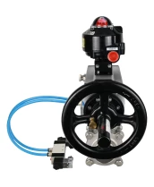 Кран шаровой DN.ru BV3232P(3pc)-FP-W-ISO-H Ду80 Ру25, полнопроходной, трехсоставной, нержавеющая сталь 316, уплотнение - PTFE, под приварку, с пневмоприводом PA-DA-105-1, пневмораспределителем 4V320-08 220В, БКВ APL-510N Ex