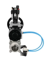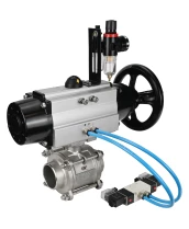 Кран шаровой DN.ru BV3232P(3pc)-FP-W-ISO-H Ду80 Ру25, полнопроходной, трехсоставной, нержавеющая сталь 316, уплотнение - PTFE, под приварку, с пневмоприводом PA-DA-105-1, пневмораспределителем 4V320-08 220В, БПВ AFC2000
