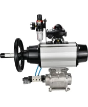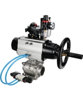 Кран шаровой DN.ru BV3232P(3pc)-FP-W-ISO-H Ду80 Ру25, полнопроходной, трехсоставной, нержавеющая сталь 316, уплотнение - PTFE, под приварку, с пневмоприводом PA-DA-105-1, пневмораспределителем 4V320-10 220В, БКВ APL-210N, БПВ AFC2000