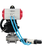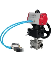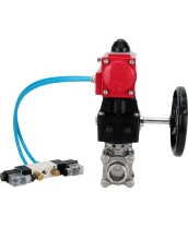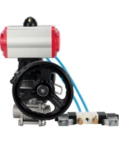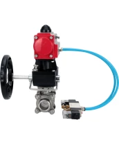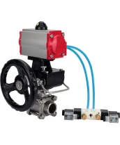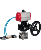 Кран шаровой DN.ru BV3232P(3pc)-FP-W-ISO-H Ду80 Ру25, полнопроходной, трехсоставной, нержавеющая сталь 316, уплотнение - PTFE, под приварку, с пневмоприводом PA-DA-105, пневмораспределителем 4V320-10 220В, ручным дублером MON3-700-T38-ISO