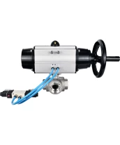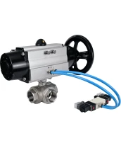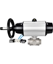 Кран шаровой DN.ru BV3232P(4pc)-SP-3WL-T-ISO-H Ду100 Ру40, стандартнопроходной, четырехсоставной, корпус - нержавеющая сталь 316, уплотнение - PTFE, внутренняя резьба, с пневмоприводом PA-DA-105-1 двойного действия, пневмораспределителем 4V320-08 220В с сертификатами качества. Доставка. Гарантия. В наличии! Звоните!
