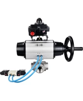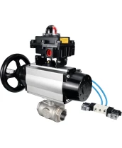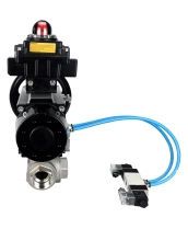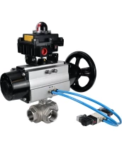 Кран шаровой DN.ru BV3232P(4pc)-SP-3WL-T-ISO-H Ду80 Ру40, стандартнопроходной, четырехсоставной, корпус - нержавеющая сталь 316, уплотнение - PTFE, внутренняя резьба, с пневмоприводом PA-DA-105-1, пневмораспределителем 4V320-08 220В, БКВ APL-410N Ex