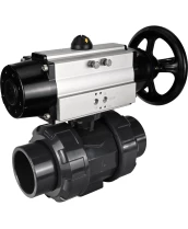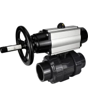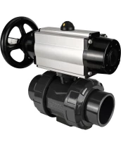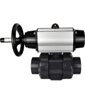Кран шаровой DN.ru BV4242E-FP-GRM-ISO Дн25 Ру10 полнопроходной, корпус - НПВХ, шар - НПВХ, уплотнение - EPDM, с пневмоприводом PA-DA-105-1 двойного действия со штурвалом