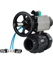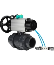 Купить Кран шаровой DN.ru BV4242E-FP-GRM-ISO Дн32 Ру10 полнопроходной, корпус - НПВХ, шар - НПВХ, уплотнение - EPDM, с пневмоприводом PA-DA-105-1, пневмораспределителем 4V320-08 220В и магнитным переключателем ALS200D вы можете в компании Стандарт-Н, оформив заказ в интернет магазине, или