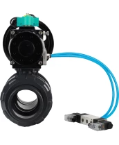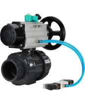 Кран шаровой DN.ru BV4242E-FP-GRM-ISO Дн32 Ру10 полнопроходной, корпус - НПВХ, шар - НПВХ, уплотнение - EPDM, с пневмоприводом PA-DA-105-1, пневмораспределителем 4V320-08 220В и магнитным переключателем ALS200D